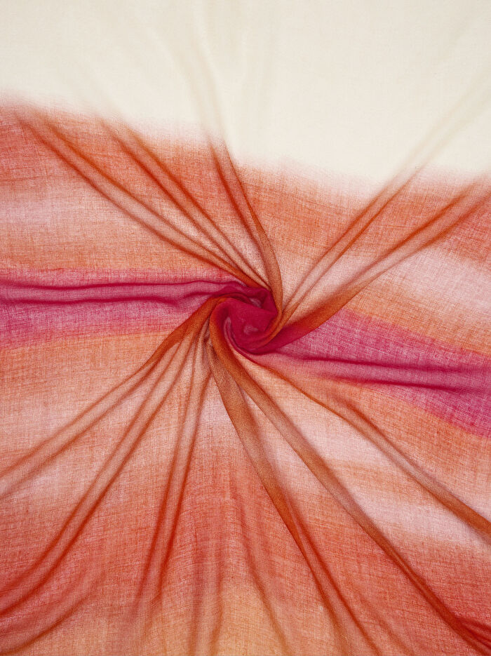 Yün karışımlı, hafif ve yumuşak baskılı fular. Kenarlarında ince püsküller. Zarif ve çok yönlü, her tarza renk ve şıklık katar.