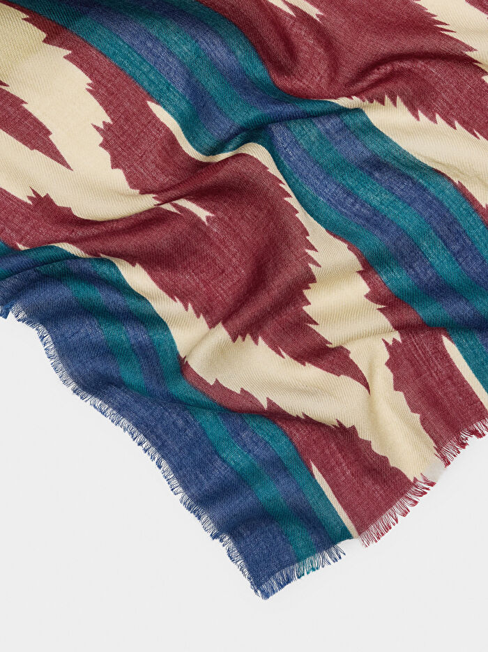 Yün karışımı, hafif ve yumuşak kumaştan üretilmiş desenli fular. Kenarlarında ince saçaklar bulunur. Zarif ve çok yönlü olan bu fular, her tarza renk ve şıklık katar.