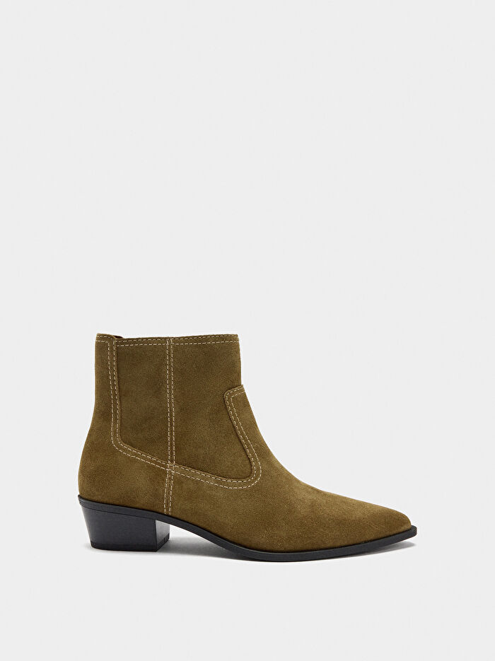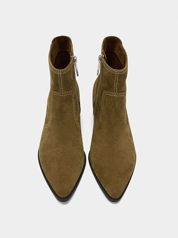 Dikiş Detaylı Süet Deri Bot