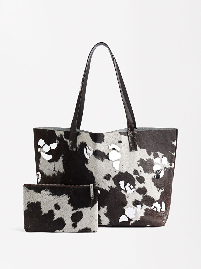 Dış kısmı aynalı detaylı. Desenli deri Shopper çanta . Asmak için çıkarılabilir. fermuarlı. deri çanta. Hakiki deri ürün olduğundan renk ve desenlerinde farklılıklar görülebilir.