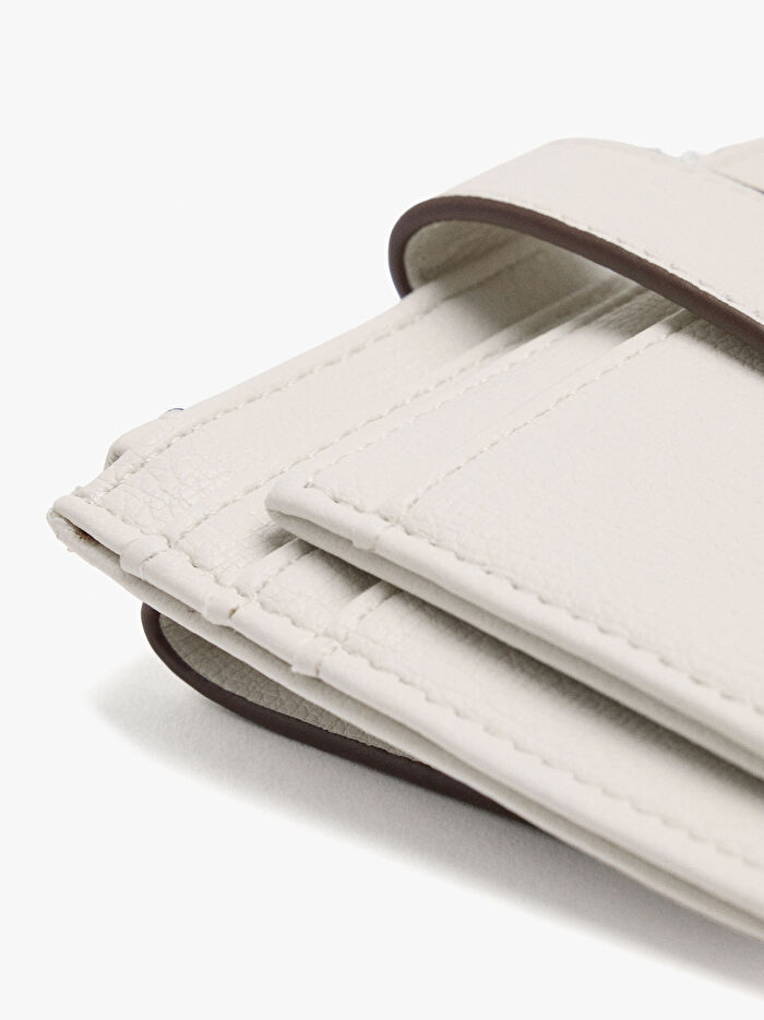 Dokulu kartlık. Orta boy. Birden fazla kart yuvası. Fermuarlı bölme. Kapaklı dış cep.