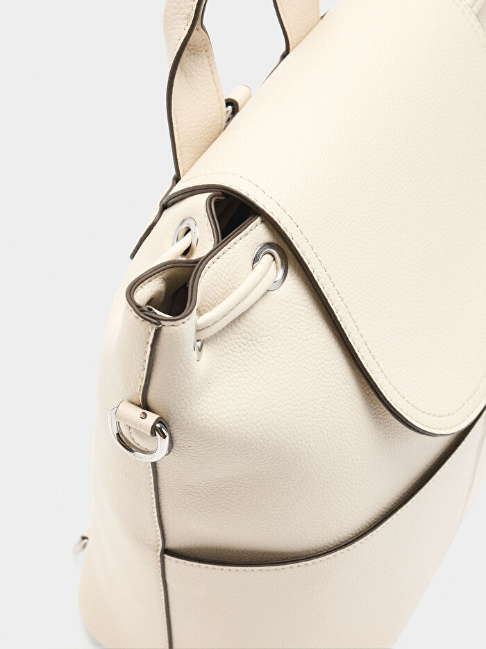 Dokulu, büyük boy sırt çantası. Astar ve iç cep. Manyetik kapaklı kapatma ve ayarlanabilir büzme ipi. Dış cepler. Sabit el askısı. Ayarlanabilir ve çıkarılabilir arka askılar, çapraz askı olarak da kullanılabilir.