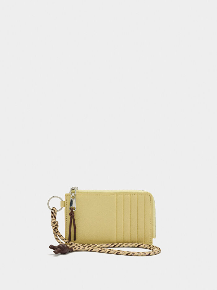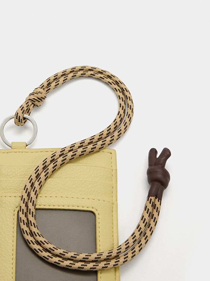 Çatlak efektli orta boy kartlık. Birden fazla kart yuvası. Astarlı ve fermuarlı bölme. Ayarlanabilir ve çıkarılabilir kordon detayı.