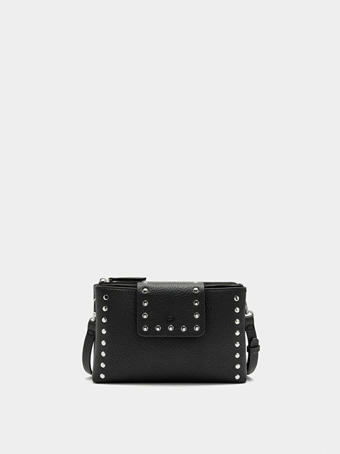 Dokulu ve Zımba Detaylı Çift Askılı Çanta
