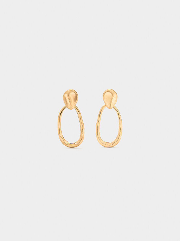 Düzensiz şekilli uzun halka küpeler. Eskitilmiş efekt.