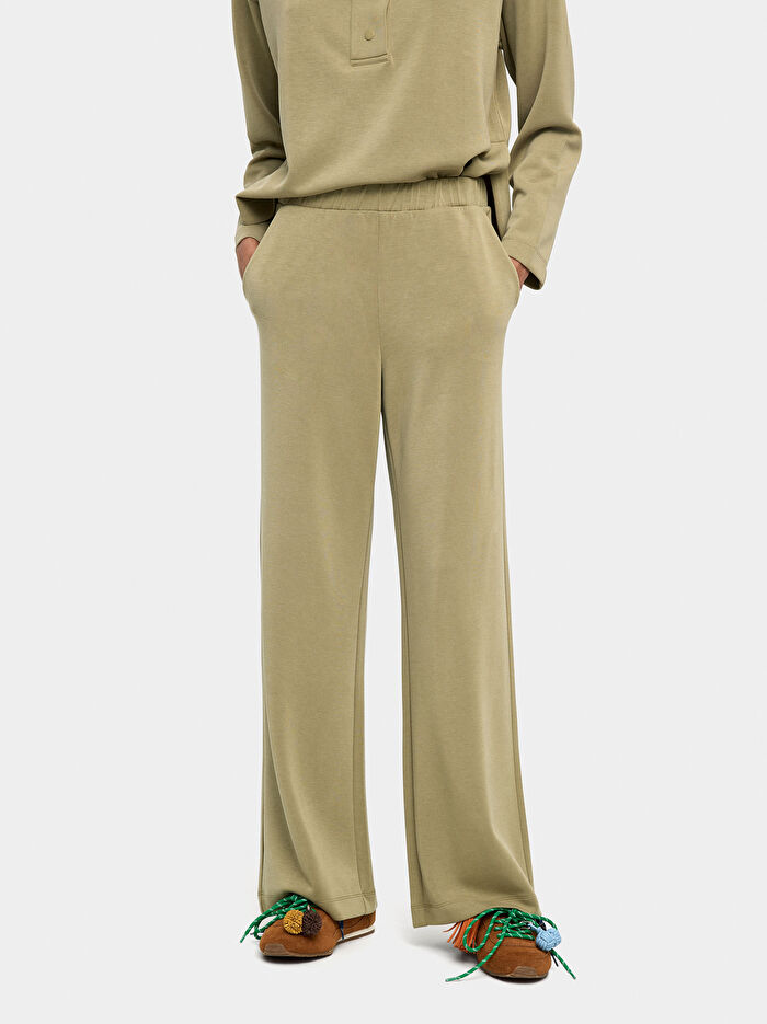 Elastik bel. Düz kesim. Yan cepler. Yumuşak dokunuş. Model 1,80 m boyunda ve XS-S beden giyiyor.