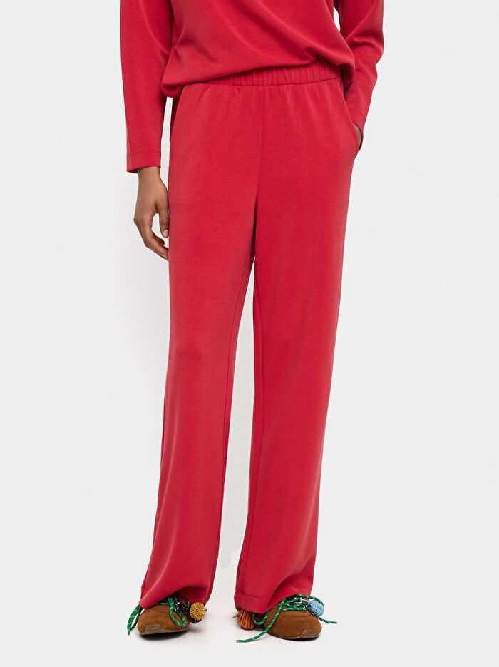 Elastik bel. Düz kesim. Yan cepler. Yumuşak dokunuş. Model 1,80 m boyunda ve XS-S beden giyiyor.