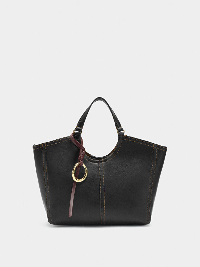 Fermuarlı tote çanta. Yanlarda mıknatıslı kapamalı bölmeler. Belirgin dikiş detayları. Astar ve iç cep. Çıkarılabilir askı. Sabit el askıları. Ayarlanabilir ve çıkarılabilir çapraz askı.