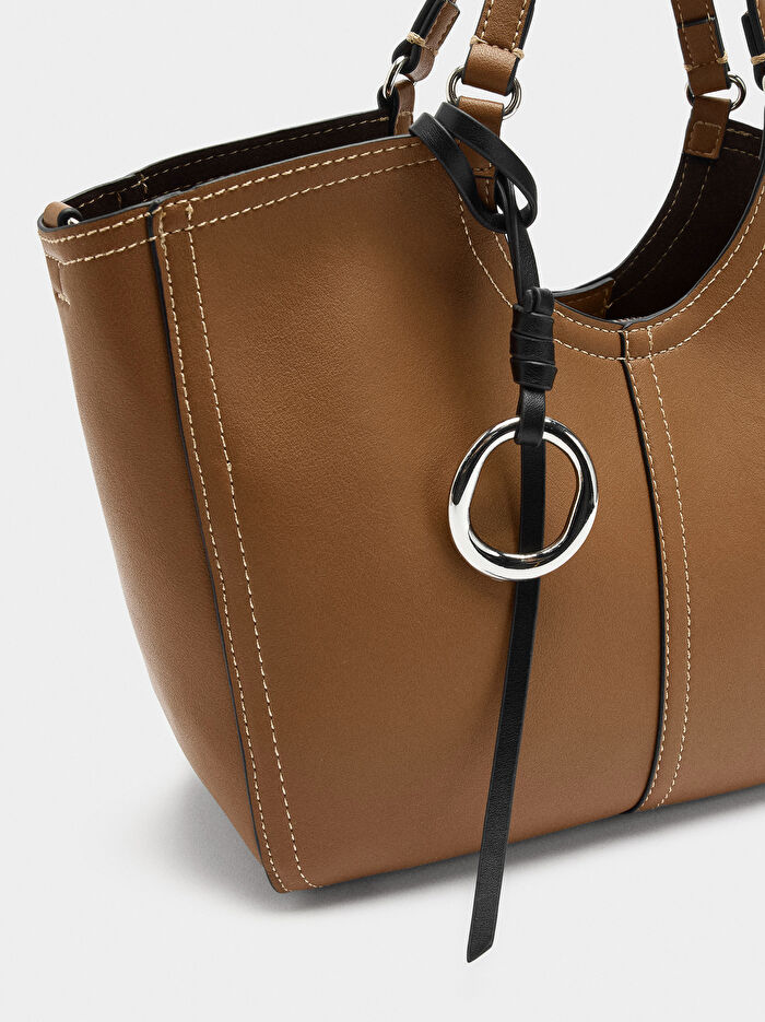 Fermuarlı tote çanta. Yanlarda mıknatıslı kapamalı bölmeler. Belirgin dikiş detayları. Astar ve iç cep. Çıkarılabilir askı. Sabit el askıları. Ayarlanabilir ve çıkarılabilir çapraz askı.