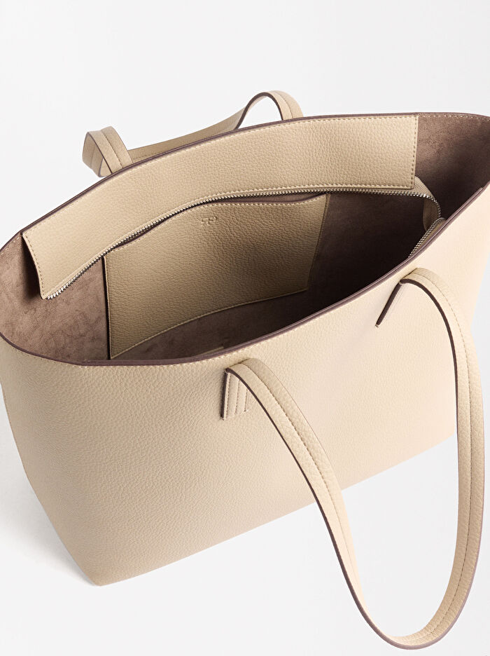 Fermuarlı, shopper çanta. İç cepli ve astarlıdır. Sabit omuz askıları.