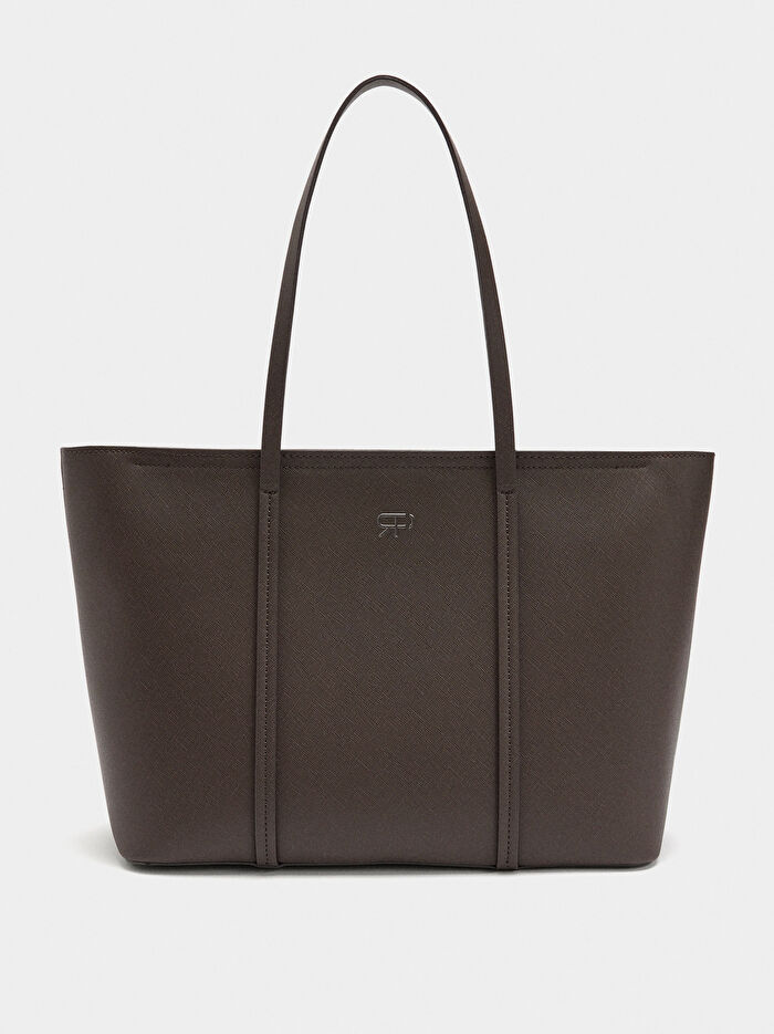 Dokulu shopper çanta, büyük boy. Astar ve iç cep. Fermuarlı. Sabit omuz askıları.