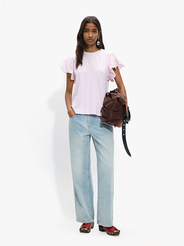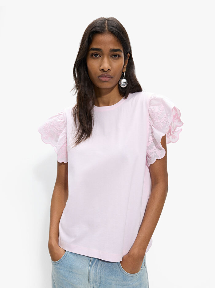 Fırfır Kollu Pamuklu T-Shirt