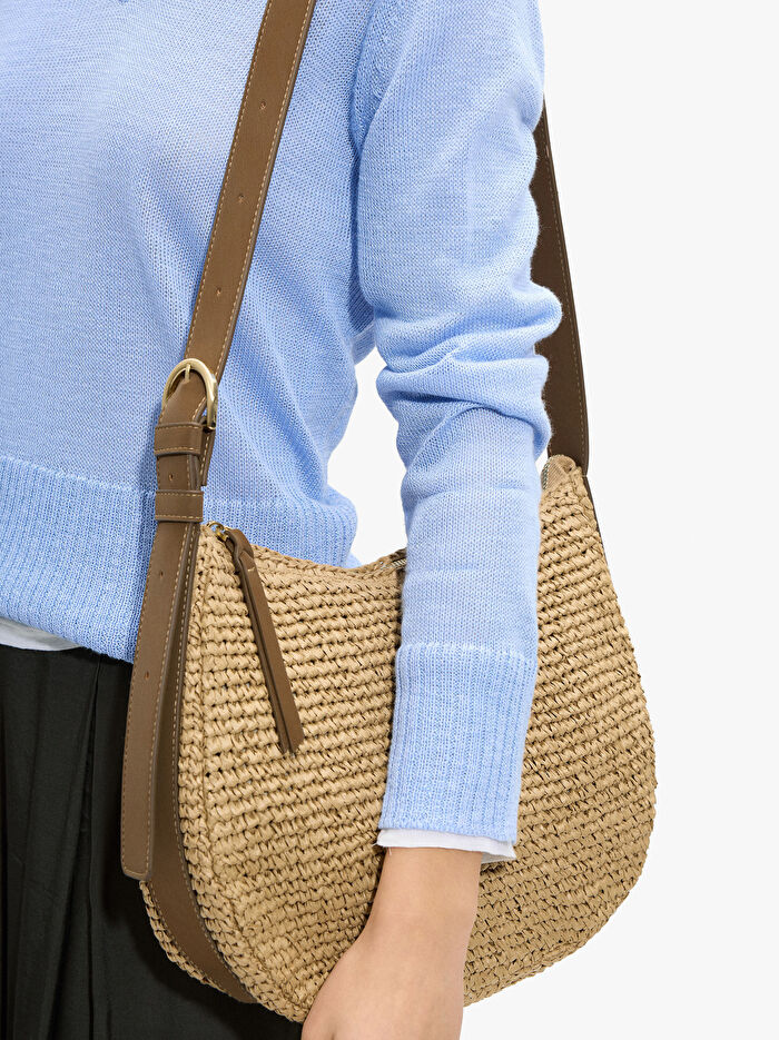 Hasır Efektli Çapraz Askılı Çanta