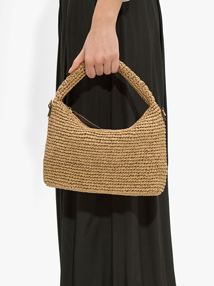 Hasır Efektli Çapraz Askılı El Çantası