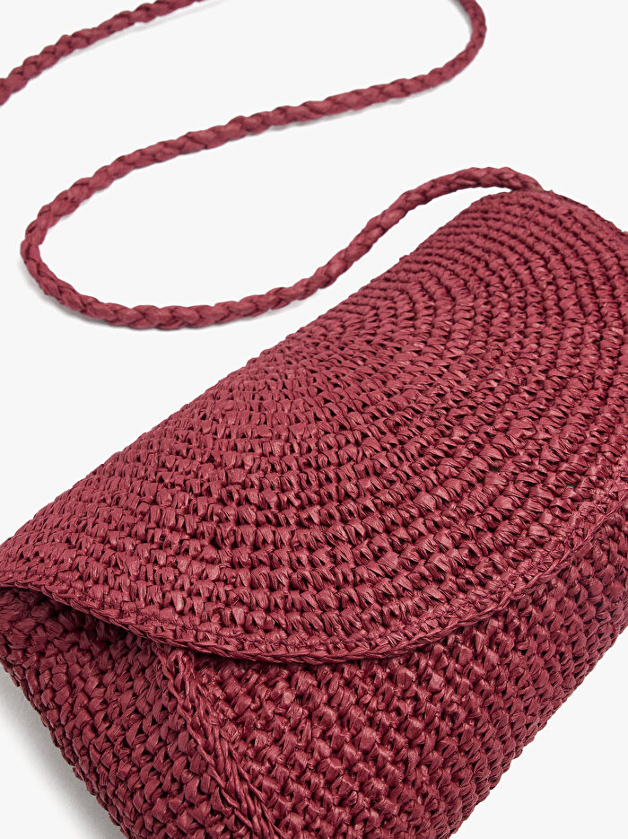 Hasır görünümlü, zarf tipi çapraz askılı çanta. Orta boy. İç astarlı. Manyetik kapaklı. Sabit örgü askılı.