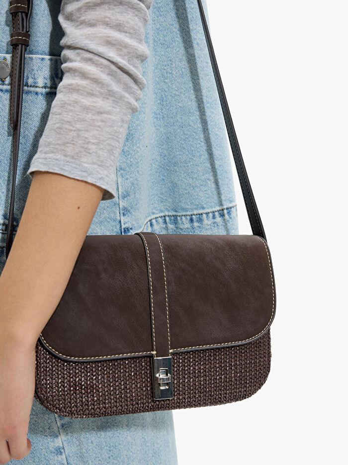 Hasır Efektli Kapaklı Çapraz Çanta