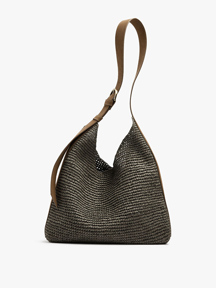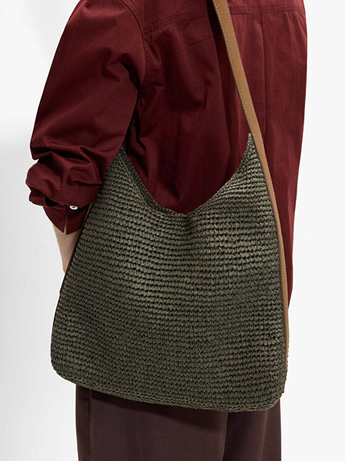 Hasır Efektli Omuz Çantası