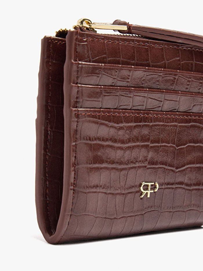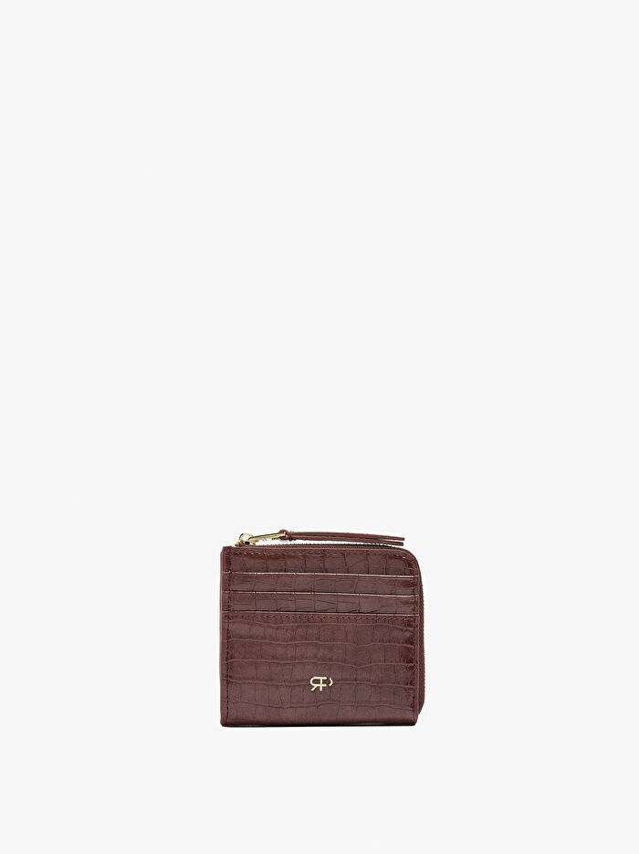 Hayvan gravürlü kartlık. Oluklu bölme ve bozukluklar için kısım; fermuarlı kapatma.
