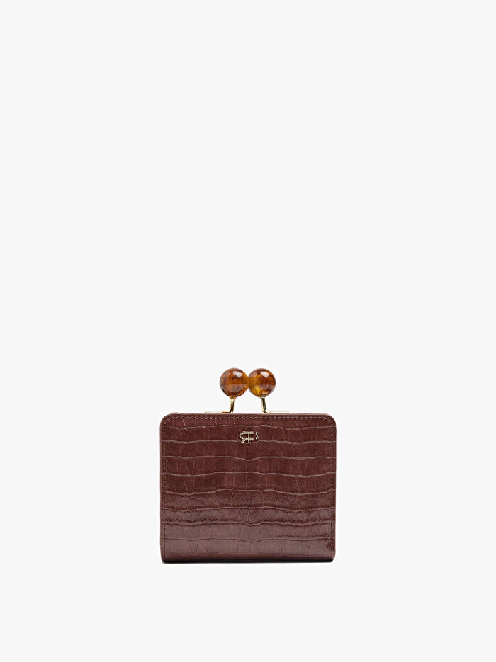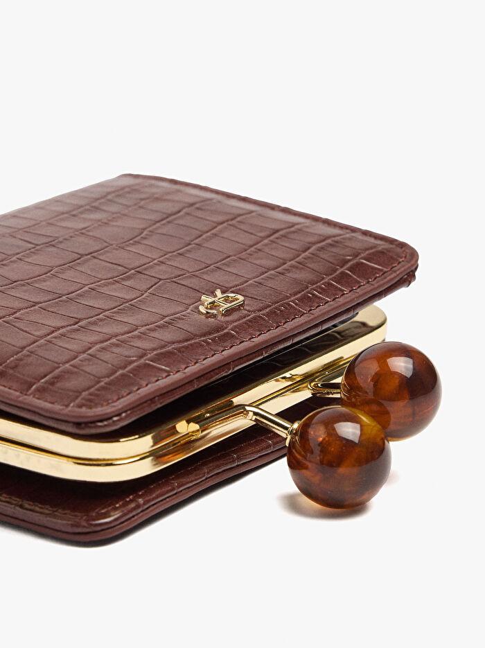 Hayvan motifli küçük cüzdan. Kart yuvaları ve kağıt para bölmesi. Kiss-lock kapamalı ve reçine boncuk detaylı şık cep. Çıtçıt düğmeli ana kapama.