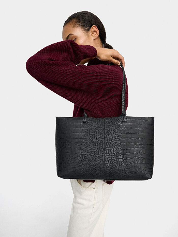 Hayvan desenli büyük shopper çanta. İç astar. Manyetik kapama. Sabit omuz askıları. Fermuarlı çıkarılabilir çanta.