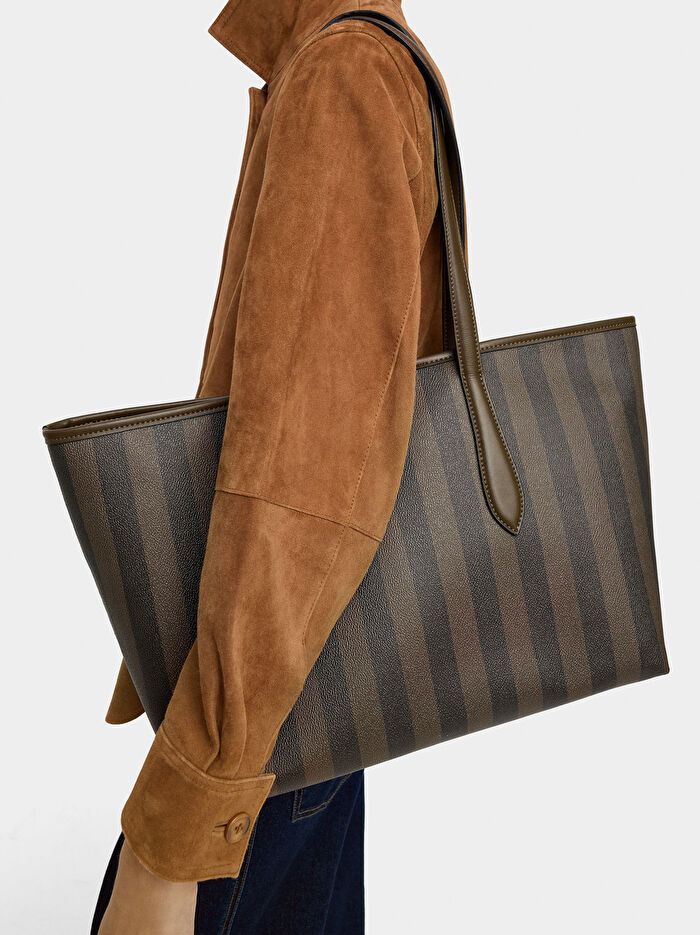 İçi Çıkarılabilir Çizgili Shopper Çanta
