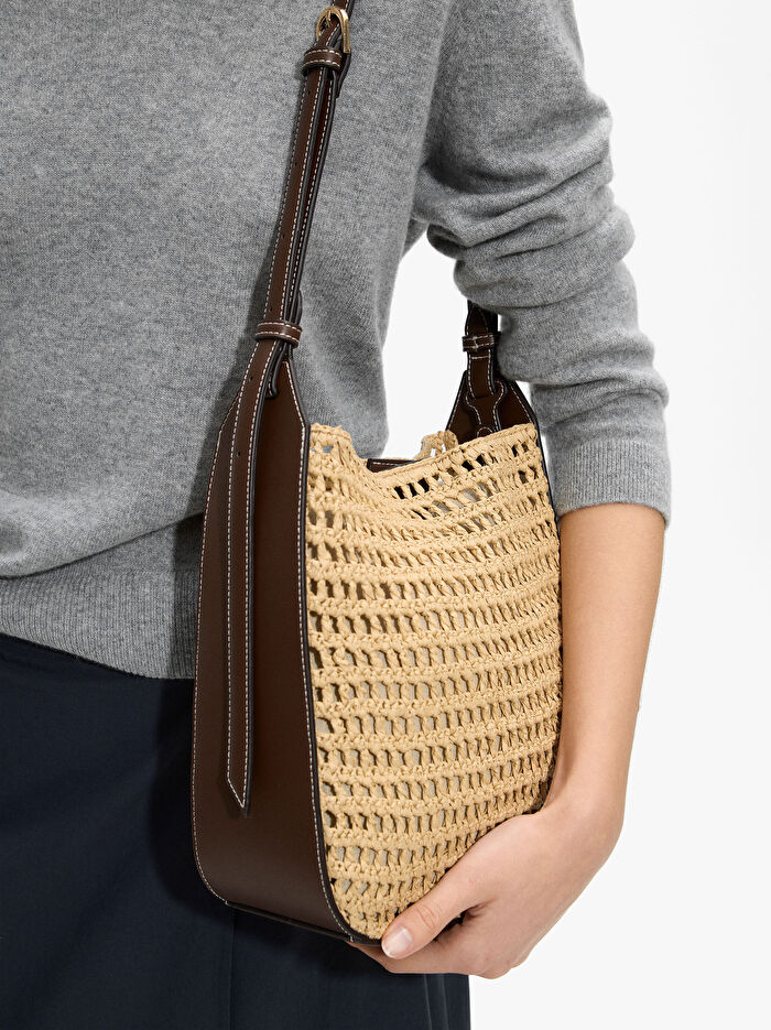 İçi Çıkarılabilir Hasır Görünümlü Omuz Çanta
