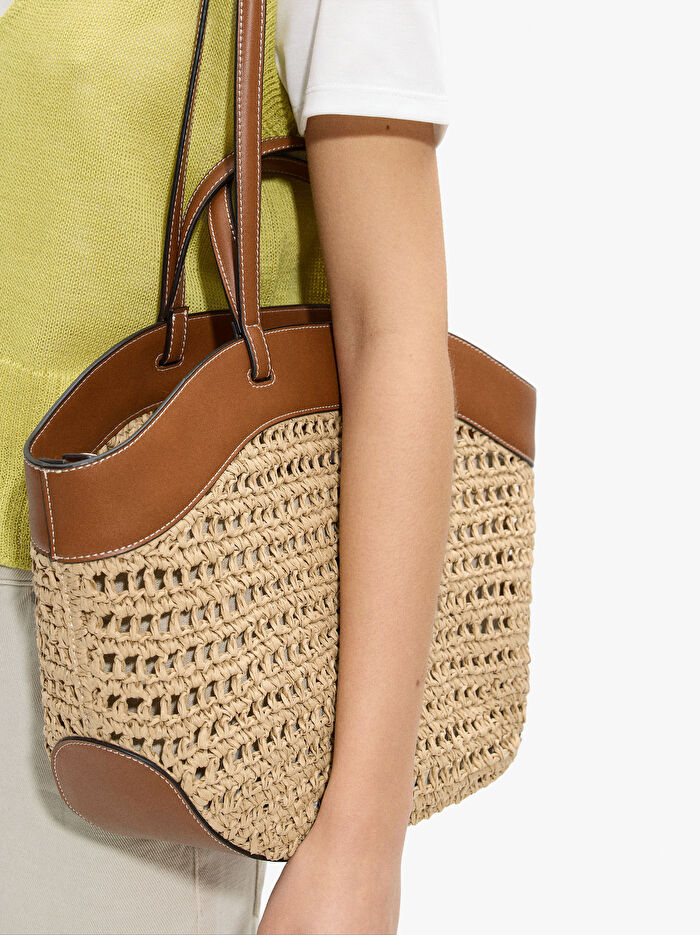 İçi Çıkarılabilir Hasır Görünümlü Shopper Çanta