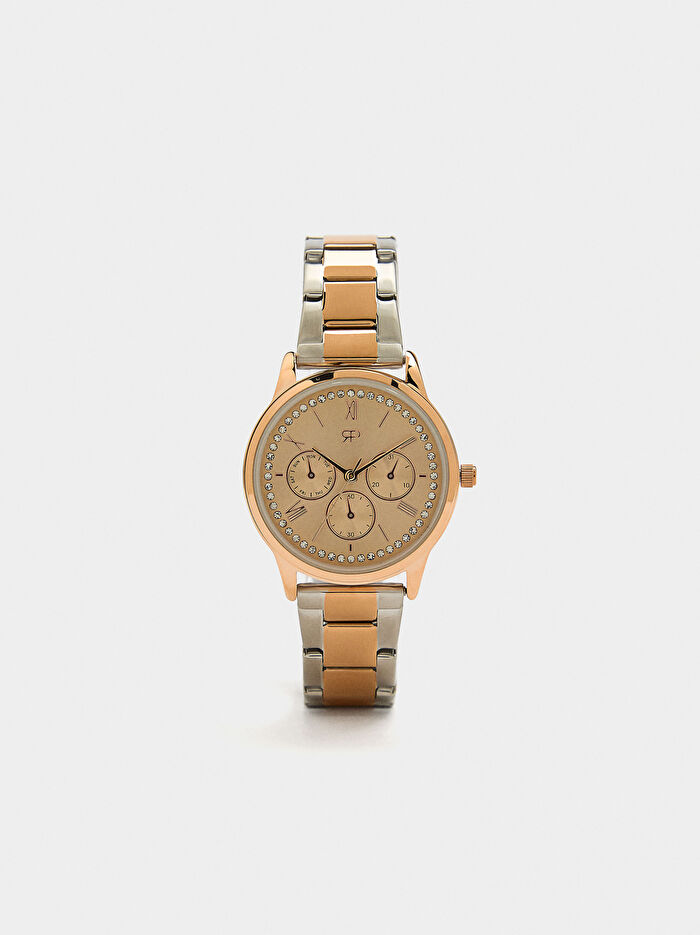 İki Renkli Paslanmaz Çelik Kayışlı Saat