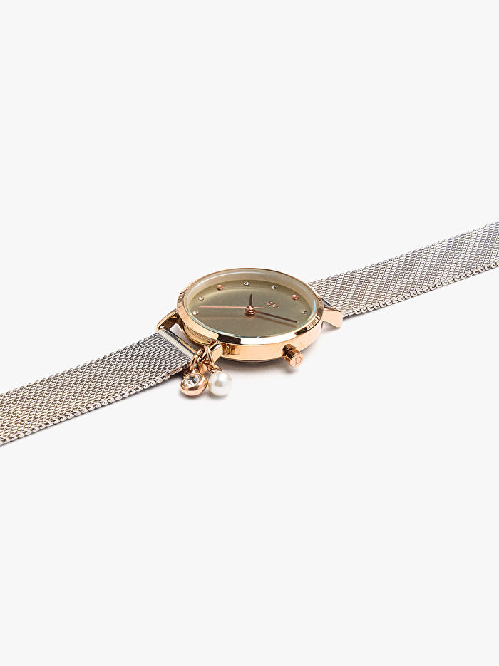 İki Renkli Paslanmaz Çelik Metal Hasır Kayışlı Saat