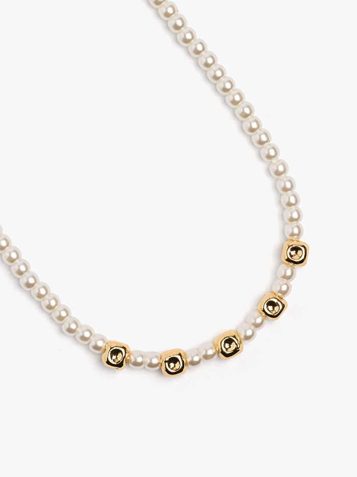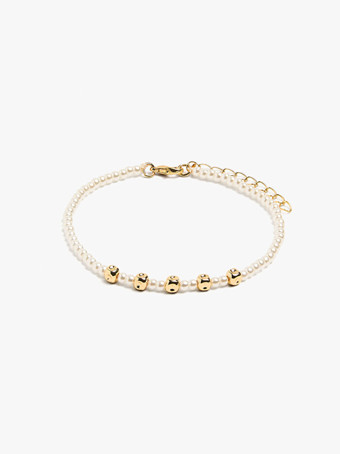 Kare boncuk detaylı inci bileklik. Istakoz kopçalı kapatma.