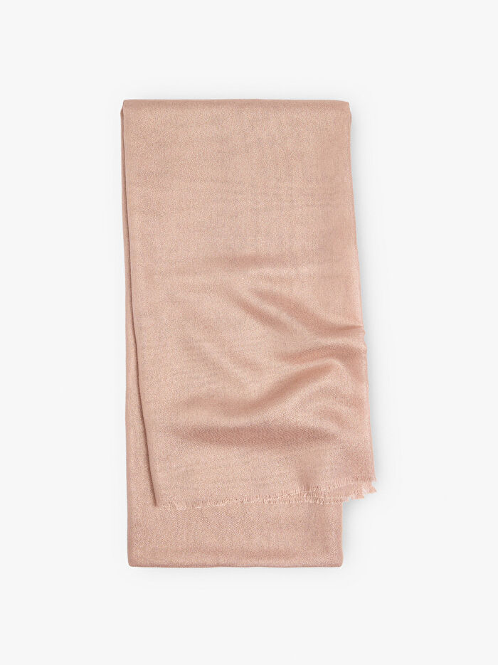 Lüreks iplikli şal. Metalik yansımalar. Kenarında saçaklar.