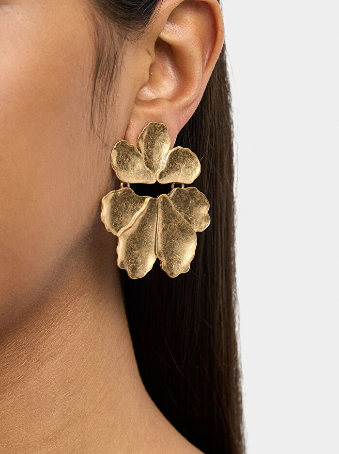 Kabartma Detaylı Maxi Çiçek Küpe