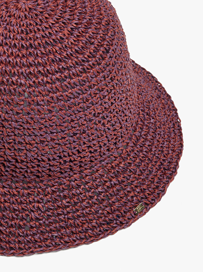 İki renkli iplikli kağıt hasır efektli bucket çanta. Ayarlanabilir iç ip. Her görünüme stil katmak için ideal aksesuar.