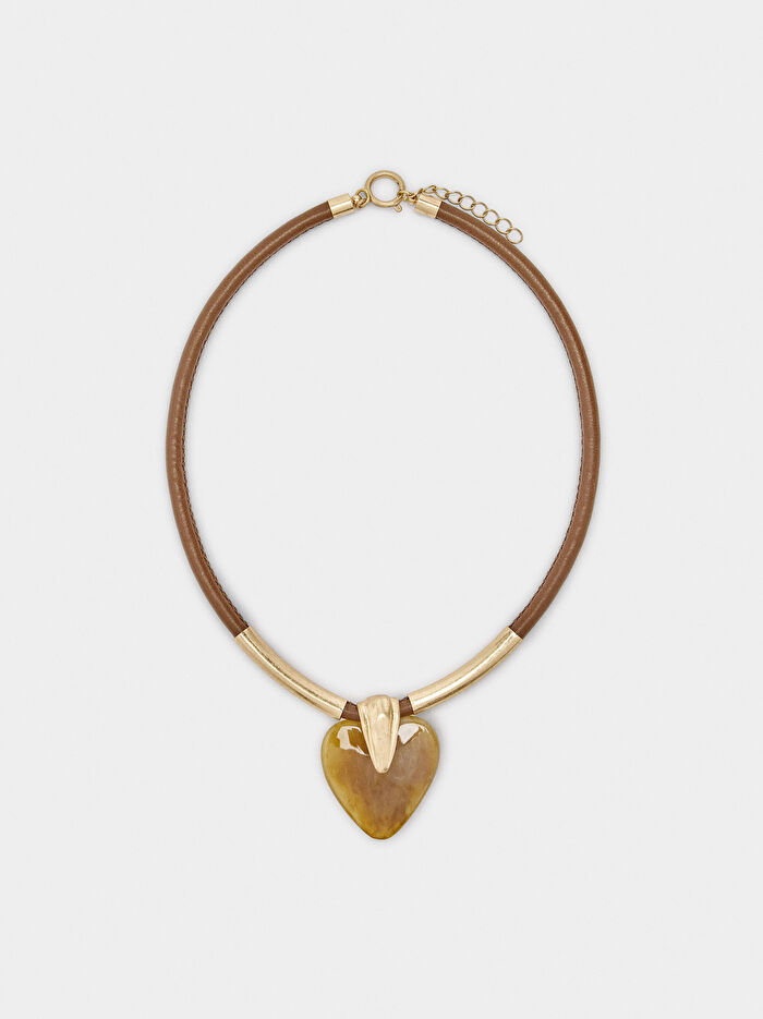 Kalp Charm'lı Kordon Kolye