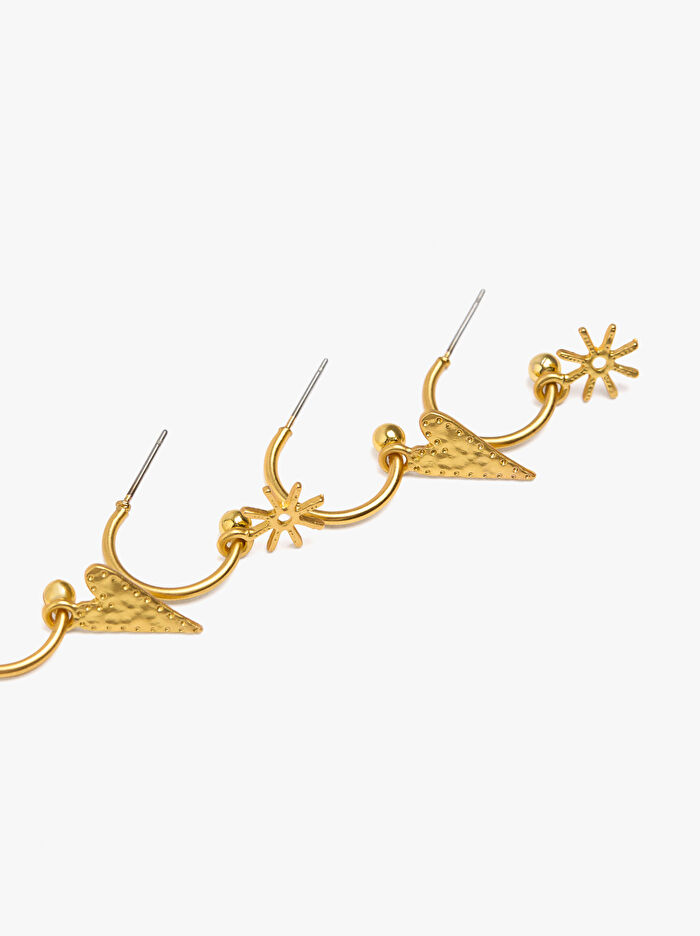 Kalp ve Yıldız Desenli Açık Halka Küpe Seti