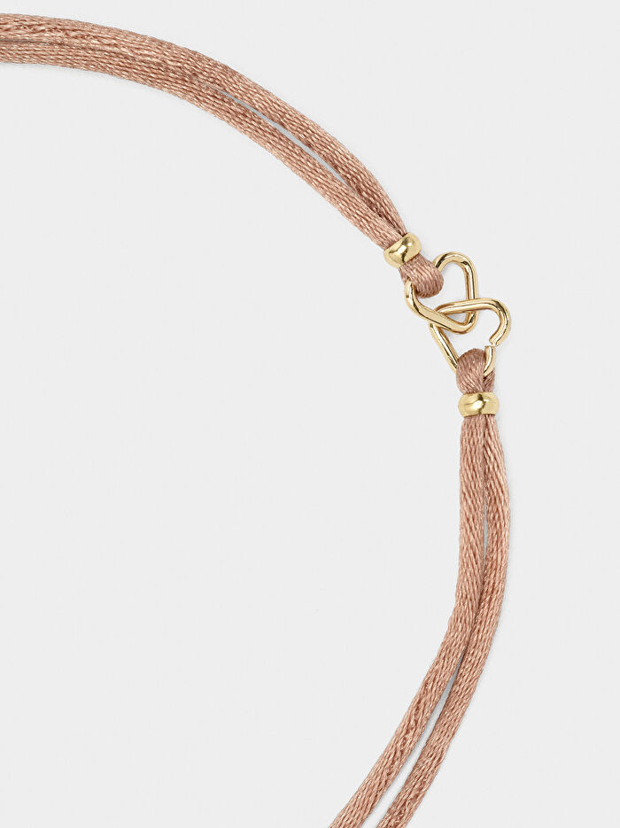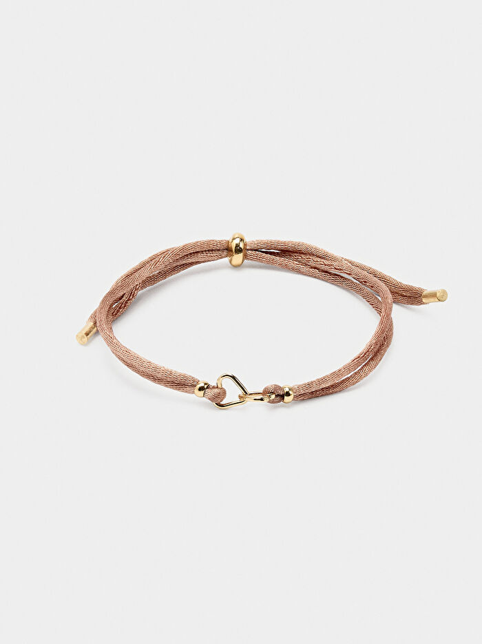Çapraz kalpler aksesuarlı, ayarlanabilir ipli bileklik.