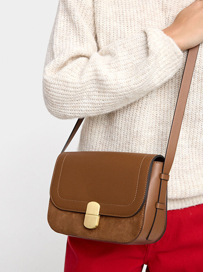 Kapaklı Deri Efektli Çapraz Çanta