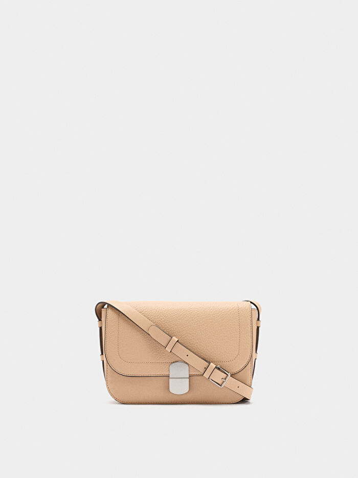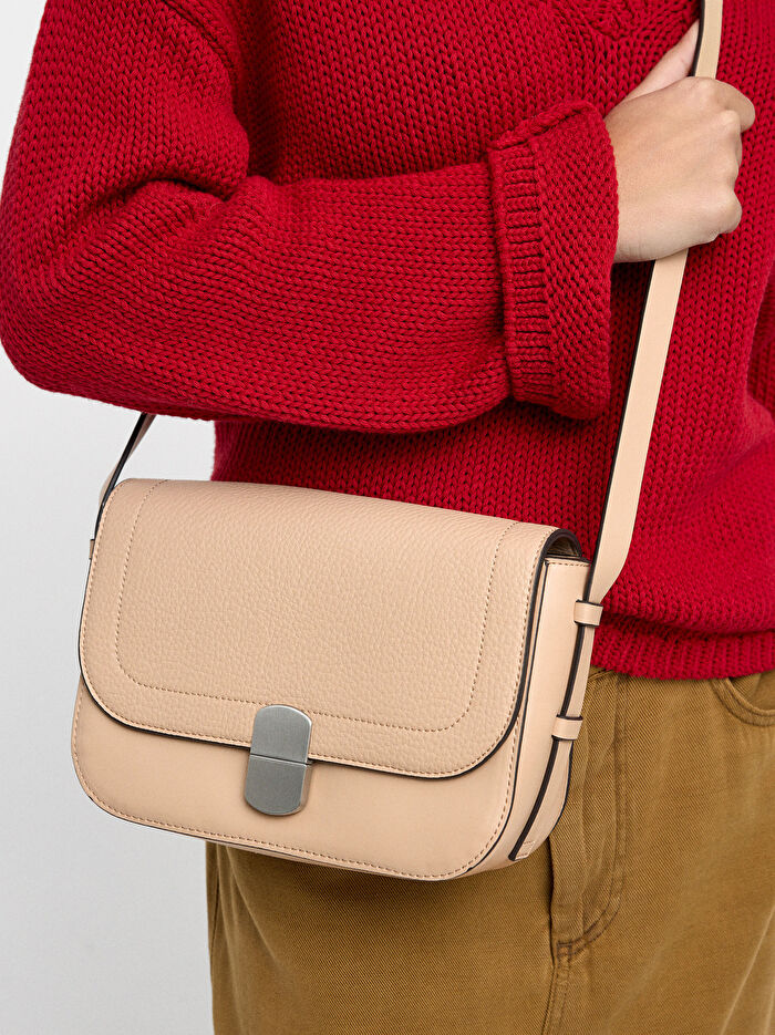 Kapaklı Deri Efektli Çapraz Çanta