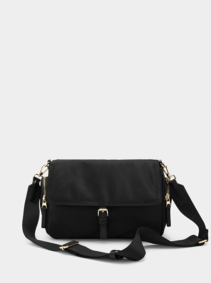Kapaklı Teknik Kumaş Çapraz Çanta