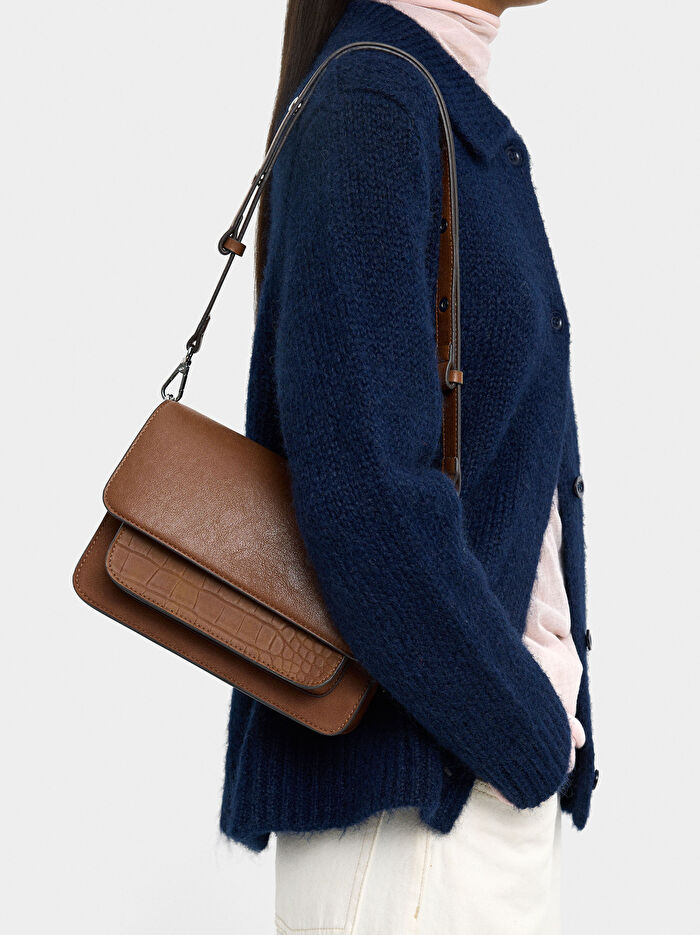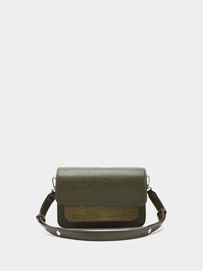 Kapaklı ve Dokulu Çapraz Çanta
