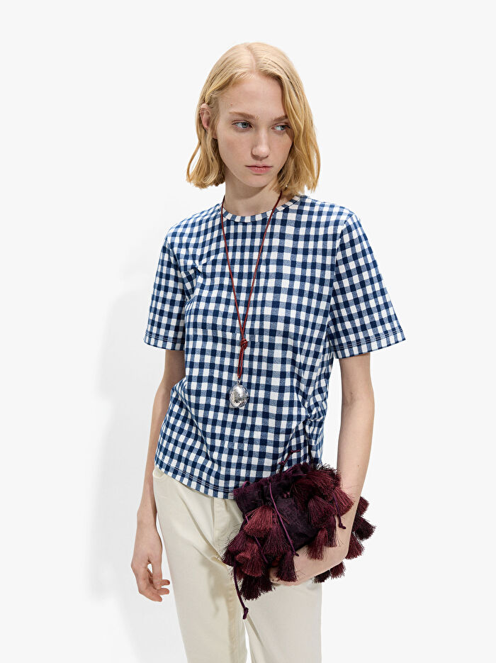 Kare Desenli Pamuklu T-Shirt