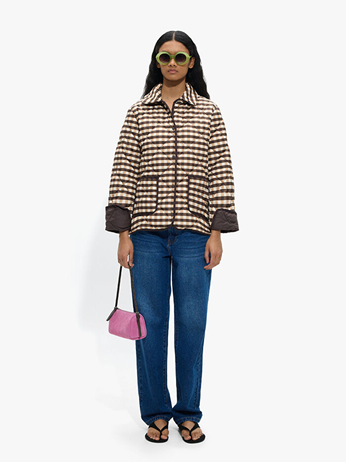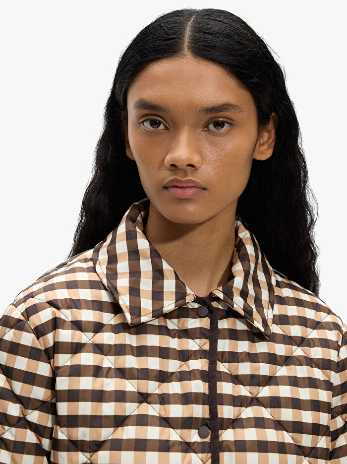 Kareli Yaka ve Manşetli Kapitone Ceket