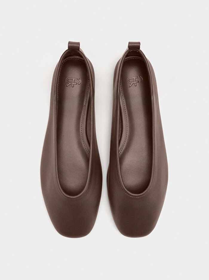 Pürüzsüz deri babet ayakkabı. Dikişli yastıklı iç taban. Oval burunlu. Ayak bileği ayarı için tokalı çıkarılabilir kayışın takılmasını sağlayan arka çekme halkaları. Termoplastik poliüretan taban.