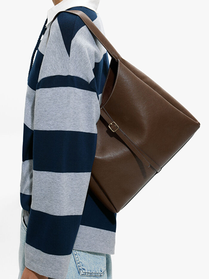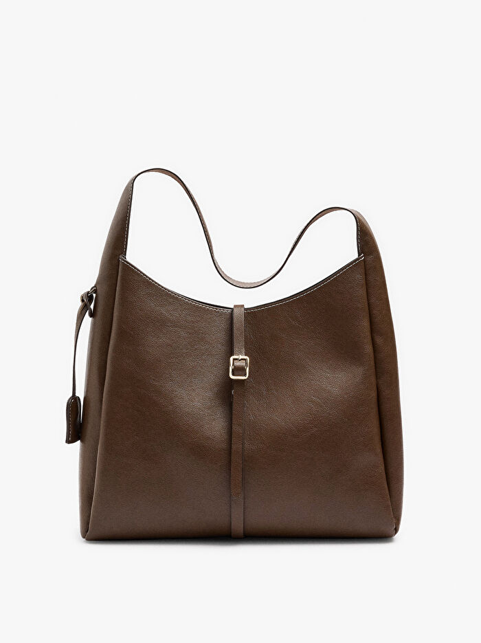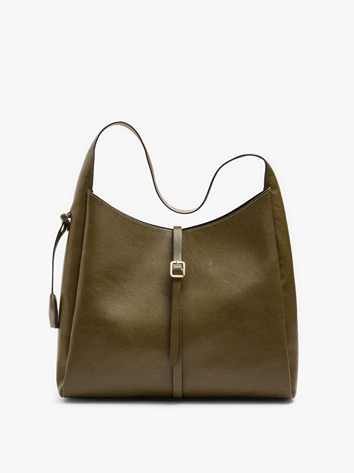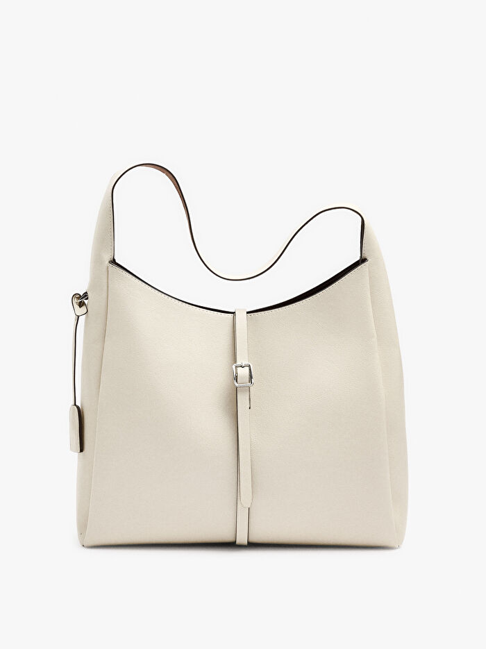 Büyük omuz çantası. Astar ve iç cep. Dekoratif tokalı manyetik kayış ile kapatma. Bir tarafta çıkarılabilir charm. Sabit askı.