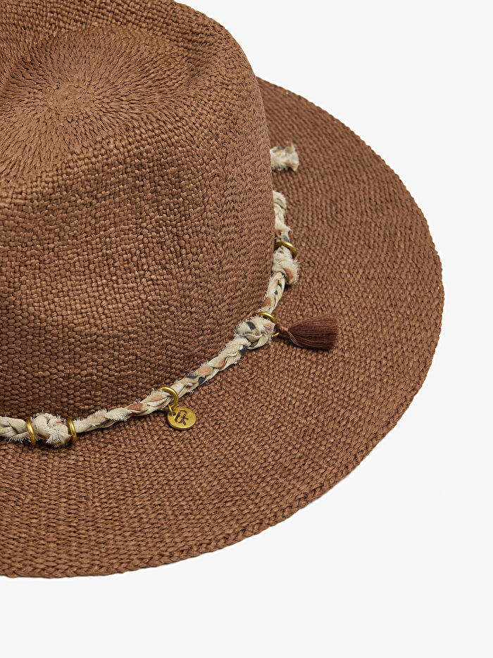 Kordonlu ve Süslemeli Hasır Efektli Şapka