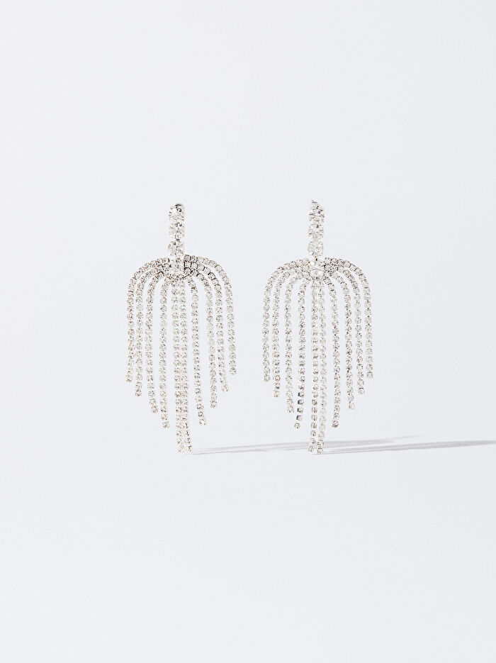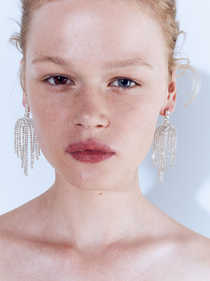 Tek renk kristalden yapılmış, kelebek tokalı uzun damla küpe.