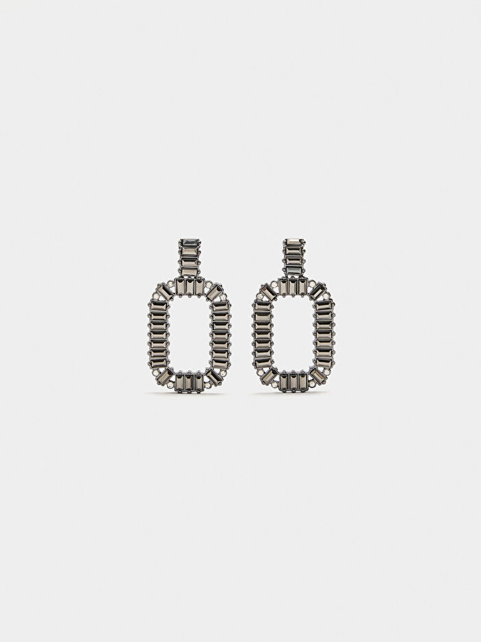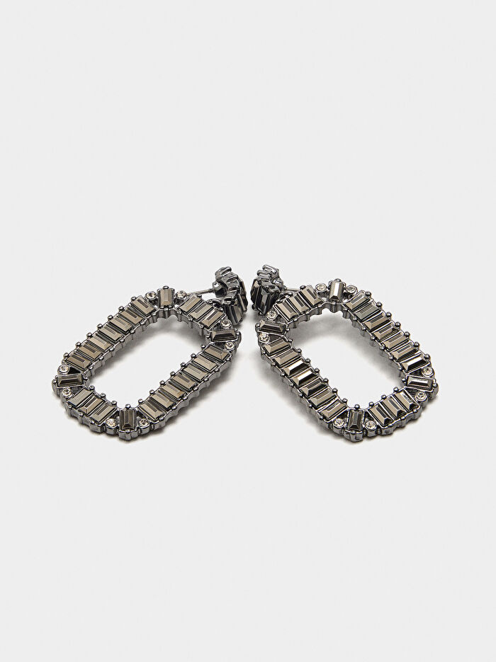 Kristalli uzun halka şeklinde küpeler. Orta boy.