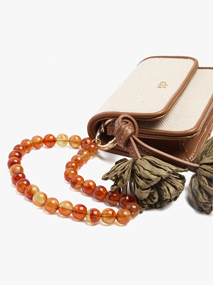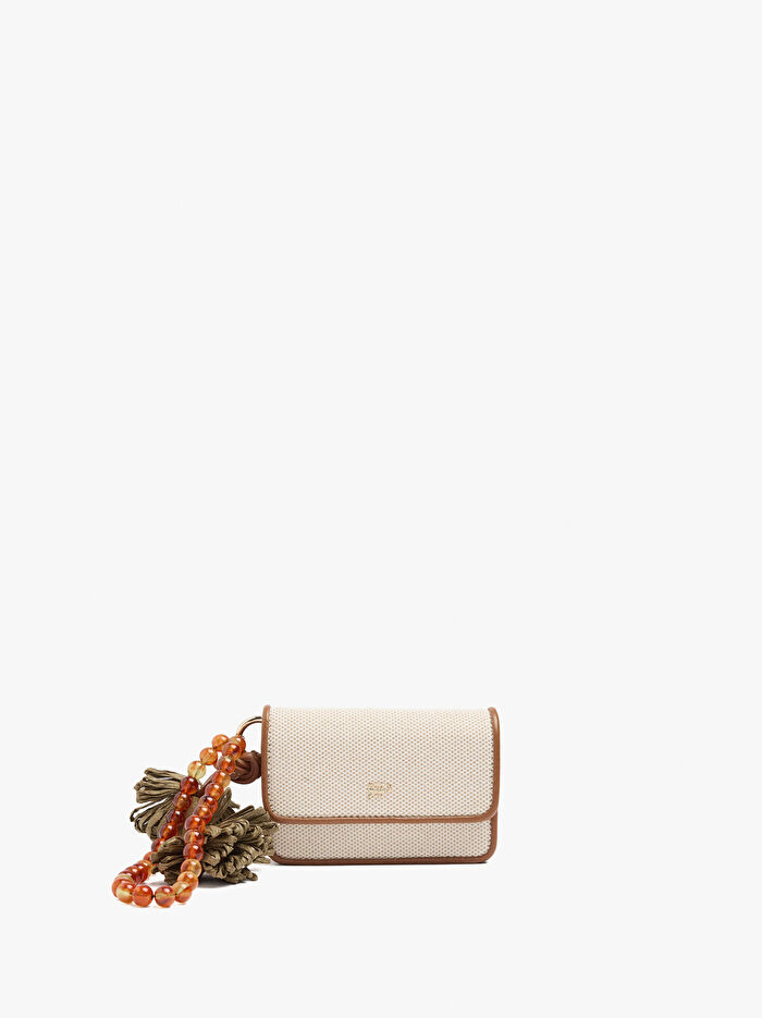 Kumaş cüzdan tarzında mini çanta. Manyetik kapatmalı kapak. İç yuvalar. Fermuarlı kapatmalı iç cep. Çıkarılabilir askı. Ayarlanabilir zincir askı içerir.