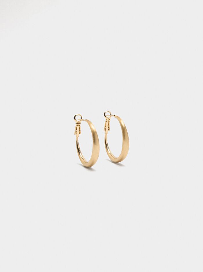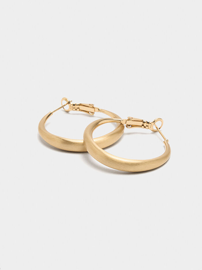 Orta boy halka küpeler, pürüzsüz ve düz. Mat yüzey