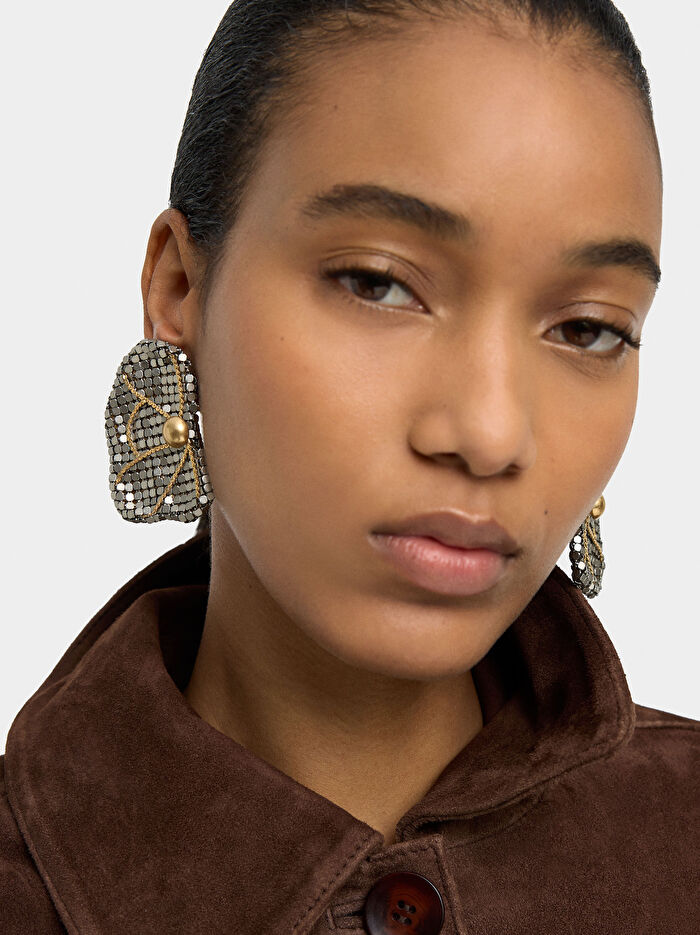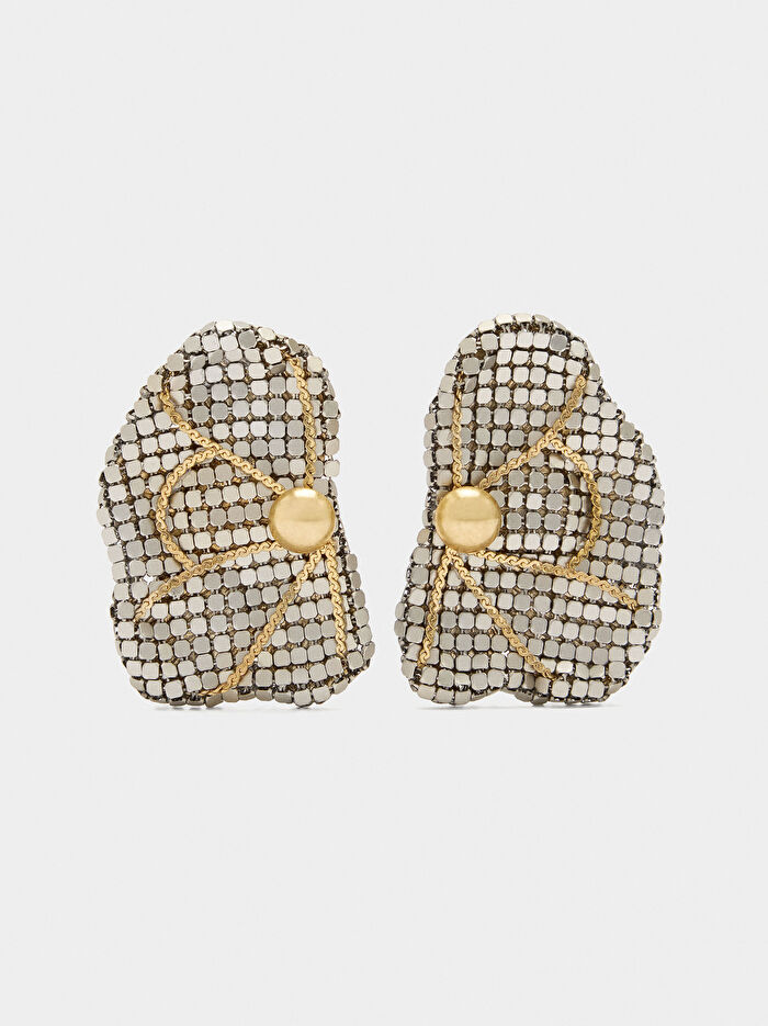 Maxi İki Renkli Yarım Çiçek Küpe
